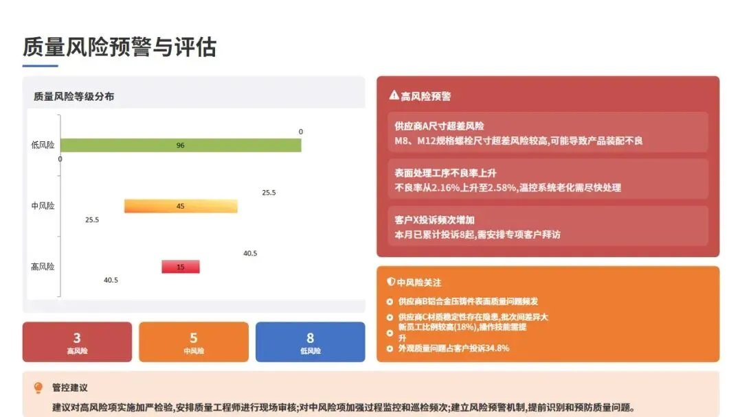 (1)推进质量数字化:引入SPC统计过程控制系统,实现关键质量参数的实时监控和预警;建设质量大数据平台,实现质量数据的自动采集、分析和可视化展示。