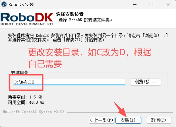 5.修改路径,建议更改安装目录(例如从C盘改为D盘),路径不要包含中文。