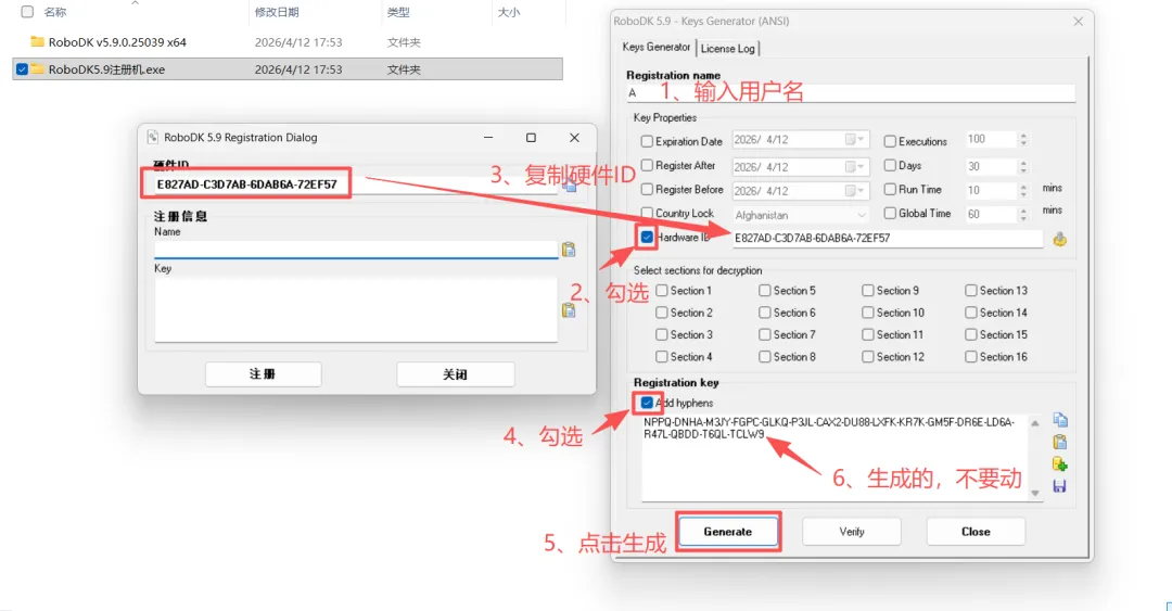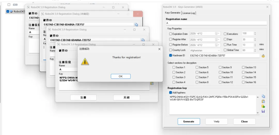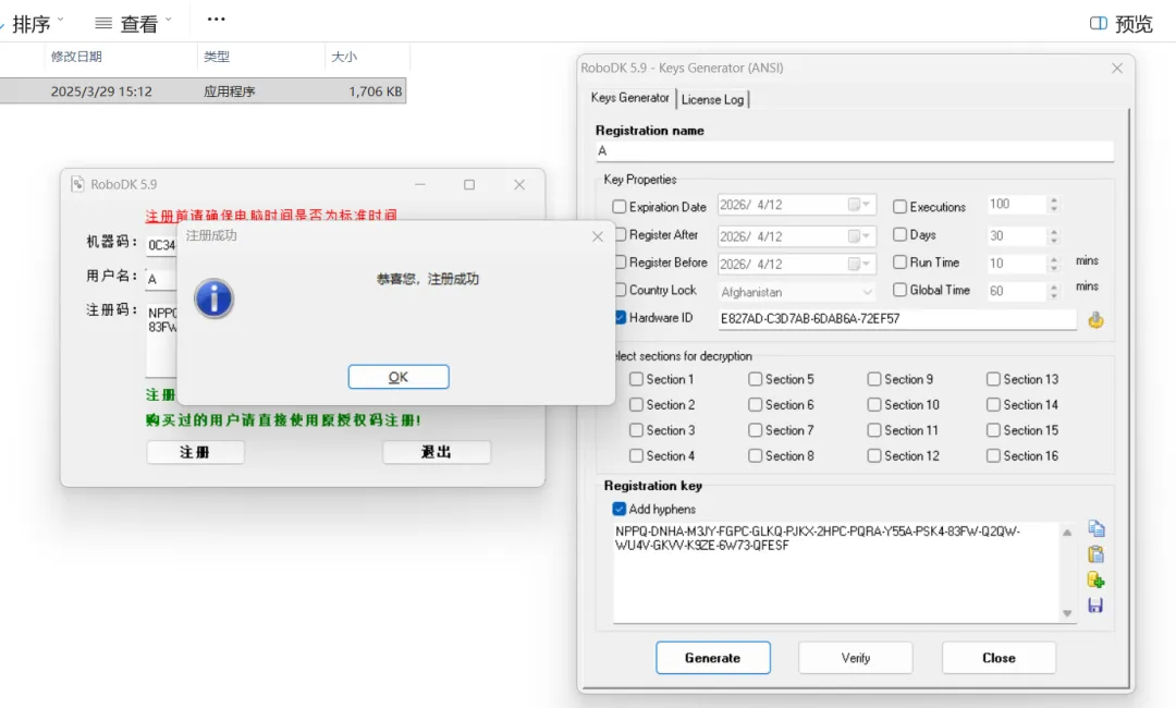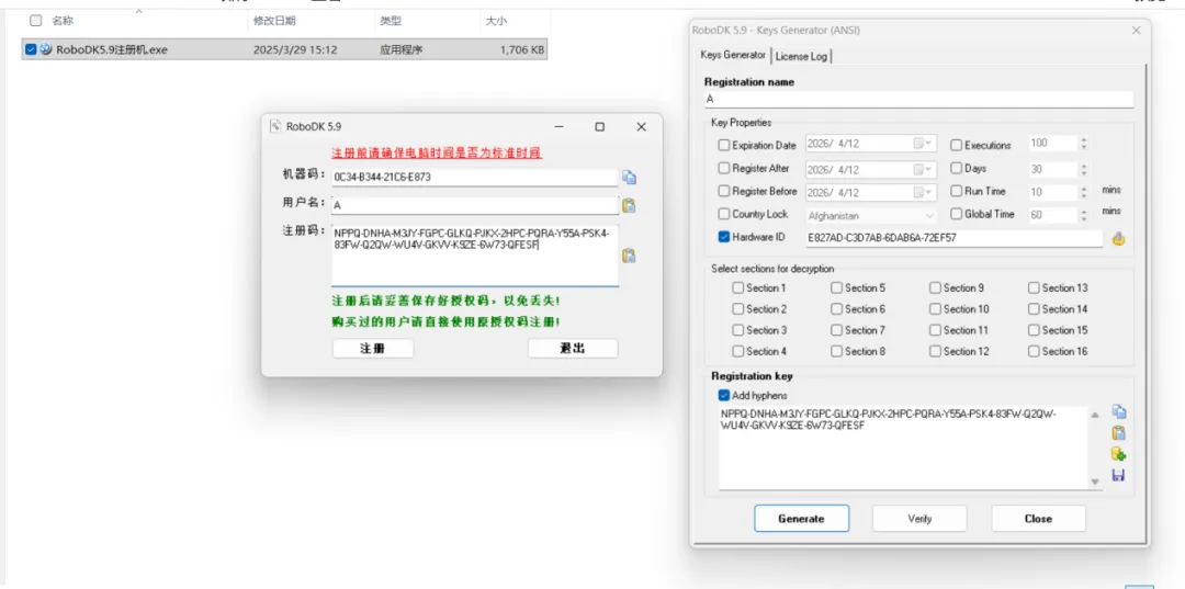 •打开文件夹中的 `RoboDK5.9注册机.exe`。