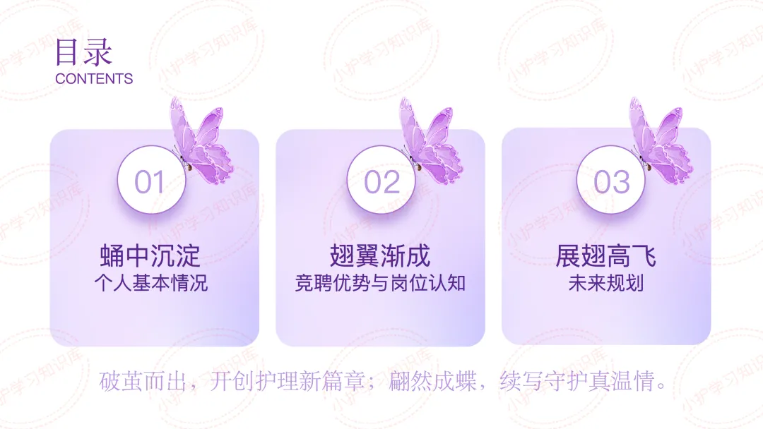 今天,我将围绕“蛹中沉淀”、“翅翼渐成”、“展翅高飞”三个篇章,向各位汇报我的积累、认知与规划。