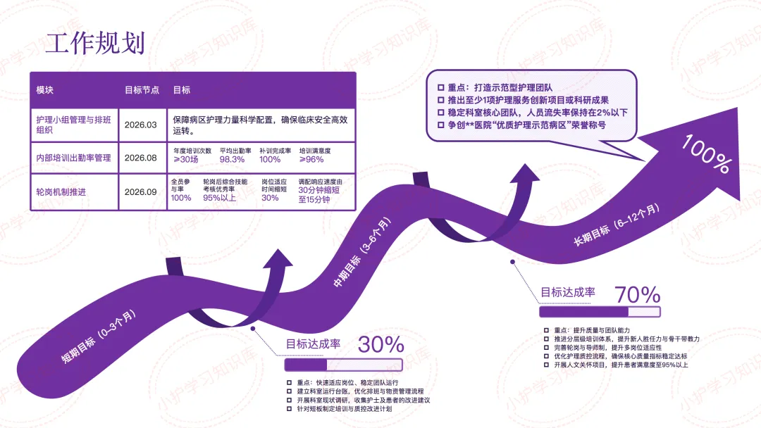 所有这些规划,都指向一个共同的目标:稳定核心团队,争创“优质护理示范病区”,最终将患者满意度提升至95%以上。