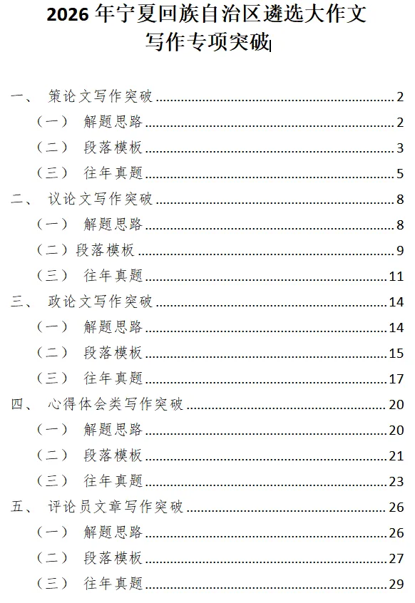 在宁夏回族自治区各级机关遴选考试中,大作文不仅是对文字表达能力的测试,更是对干部政治站位、理论素养、逻辑思维以及解决实际问题能力的综合检验。今天我们就直接把大作文模板分享给大家!!!
