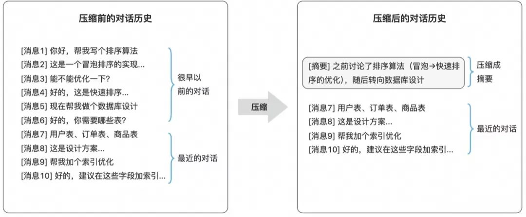 核心操作 | 生成Summary替换旧消息 | 直接删减部分工具或会话结果 |