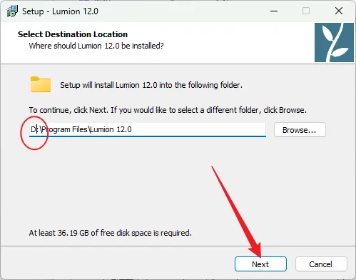 4.修改路径地址中的首字符C可更改软件安装位置(如:将C改为D表示安装到D盘),点击【Next】。