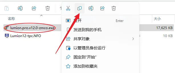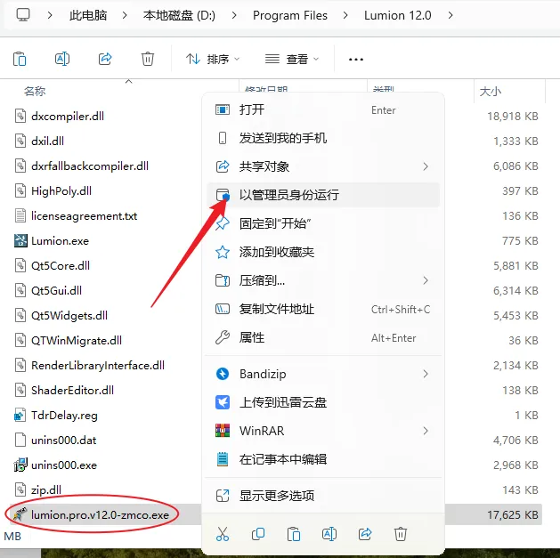 13.鼠标右击粘贴后的【lumion.pro.v12.0-zmco】选择【以管理员身份运行】。