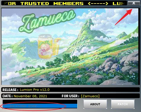 16.提示“patch done”后点击右上角【X】退出。