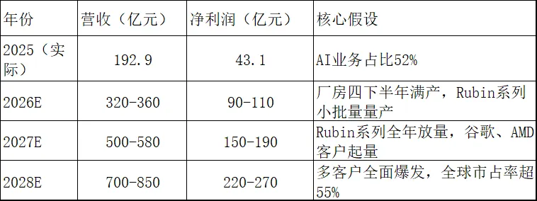 与此同时,公司客户结构持续优化:谷歌V7P板卡已进入小批量测试阶段,待产能释放后快速放量,亚马逊、AMD等全球科技巨头也逐步合作,从“单一大客户”转向“多元客户布局”,抗风险能力与业绩空间全面升级。