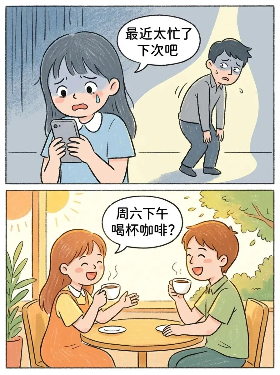 真正靠谱的脱单对象,聊天往往是有点钝感、甚至略显无聊的,但贵在事事有回应,情绪稳定。千万别被那种廉价的关心冲昏头脑,一上来就热情似火的,撤退的时候往往也比谁都快。