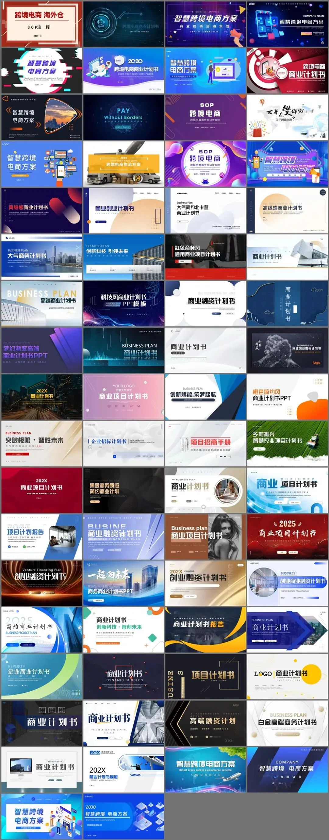 包括了:大气简约北卡蓝PPT、跨境电商海外仓SOP流程PPT、智慧跨境电商方案PPT、跨境电商计划书PPT、高级感商业计划书PPT、商业融资计划书PPT、企业招标计划书PPT、项目招商手册PPT、乡村振兴智慧农业项目计划书PPT、项目计划报告PPT、商业项目计划书PPT、高端融资计划PPT、智慧跨境电商方案PPT等。