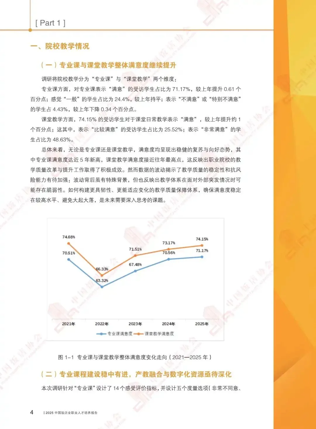 专业课方面,对专业课表示“满意”的受访学生占比为 71.17%,较上年提升 0.61 个