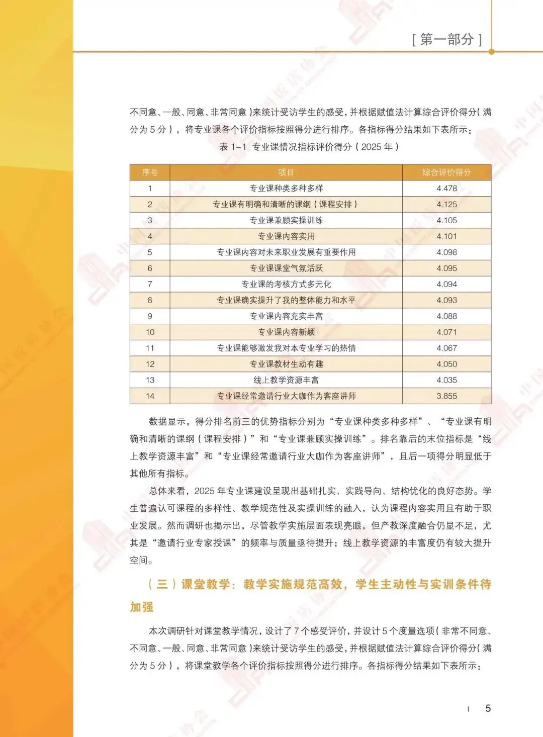 调研将院校教学分为“专业课”与“课堂教学”两个维度: