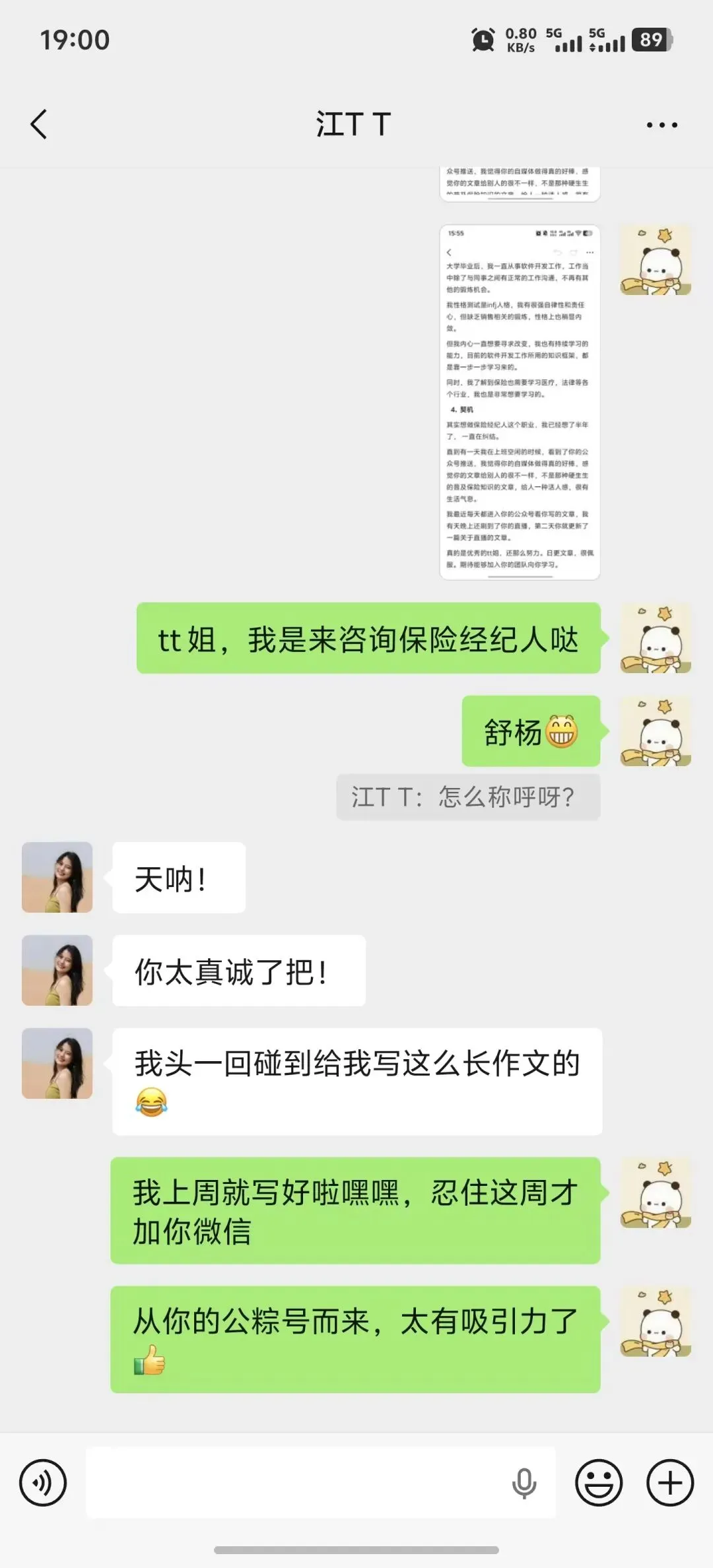 TT是中山大学硕士,曾任985高校辅导员,裸辞开始保险经纪人这份事业,她自媒体做得很好。真的好优秀。所以我找TT做了我的引荐人。