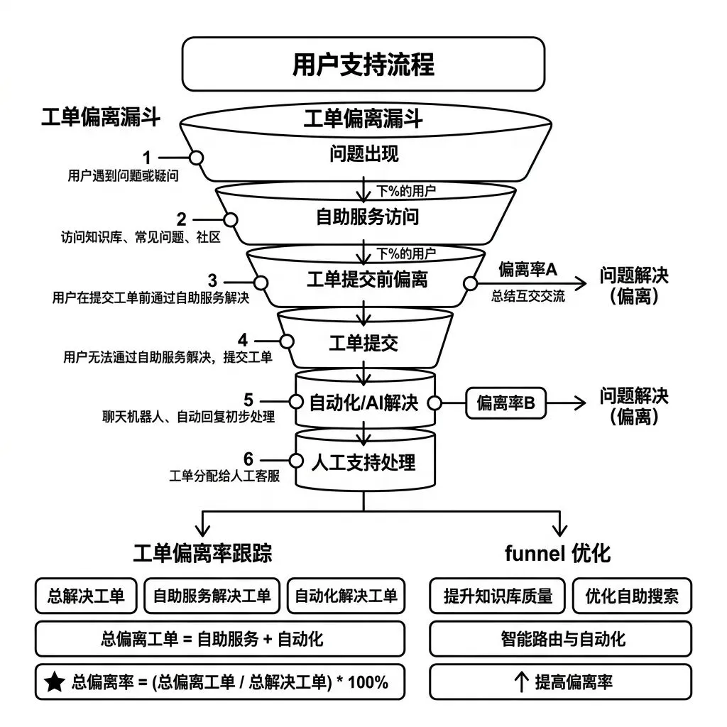 必须盯紧假性偏转:用户其实并不是真被 AI 解决了,只是因为入口藏得太深,活活找不着人工被劝退了。这是隐性的饮鸩止渴。