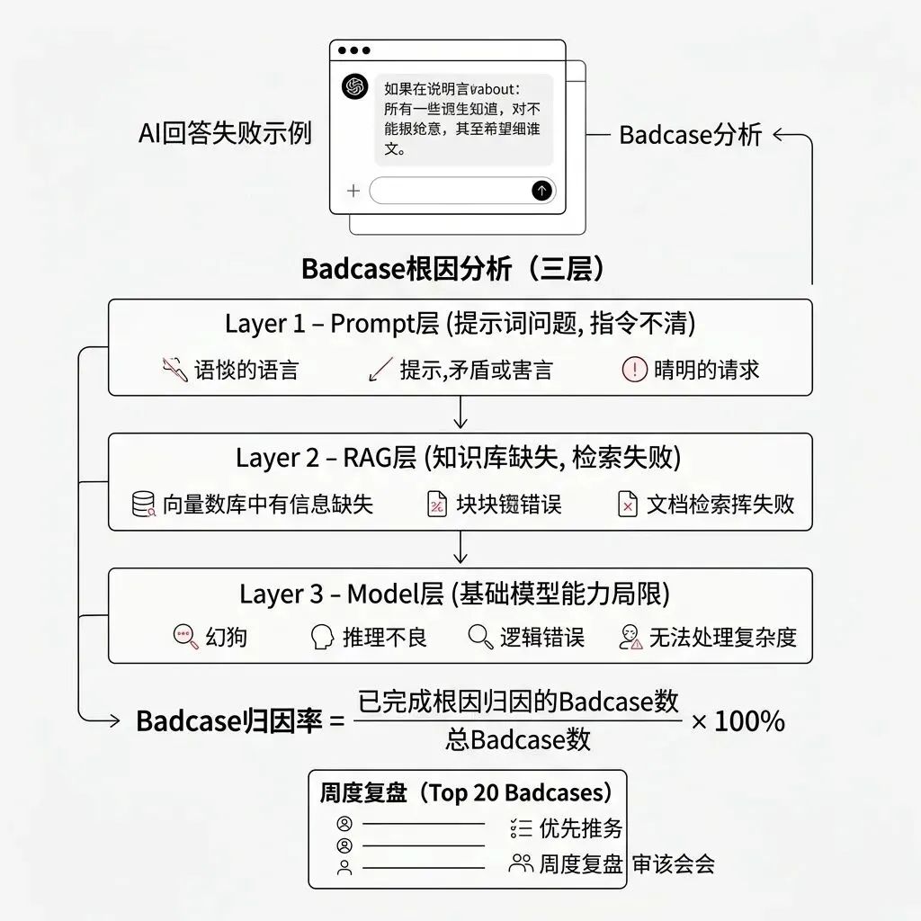 这个根因必须一杆到底:是前置发起的 Prompt 不规整?还是 RAG 检索偏差?或者是参数基座本身在认知这个品类上有缺陷?找错池子倒水都是在白修。