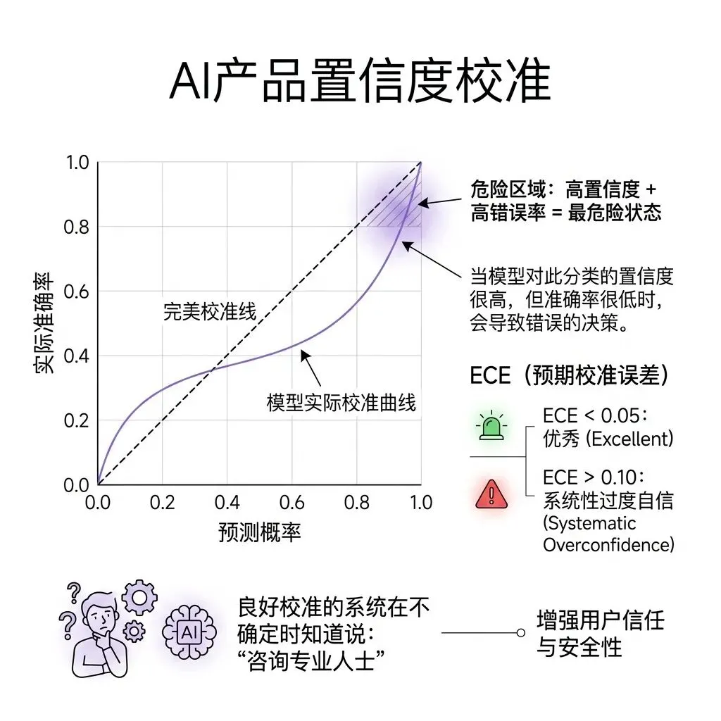 置信度校准衡量的是模型对自己输出的确定程度是否与实际准确率相匹配。理想状态是模型说自己 90% 确定的答案,实际正确率也应该在 90% 左右。现实中的大模型往往过度自信,对自己瞎编的内容也表现出极高的确定性,这比不懂装懂更可怕。