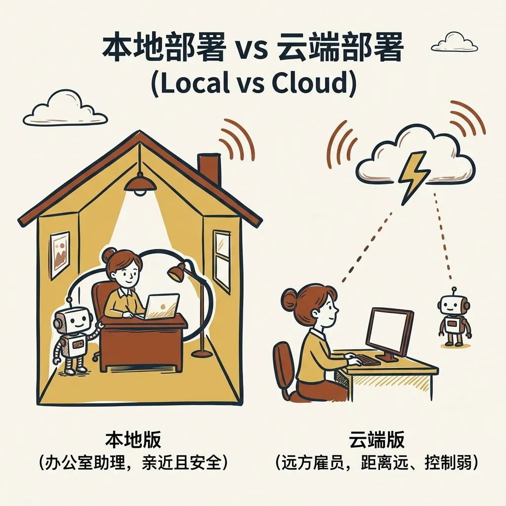 本地版更像“住在你办公室里的助理”,云端版更像“住在外地机房里的远程雇员”。