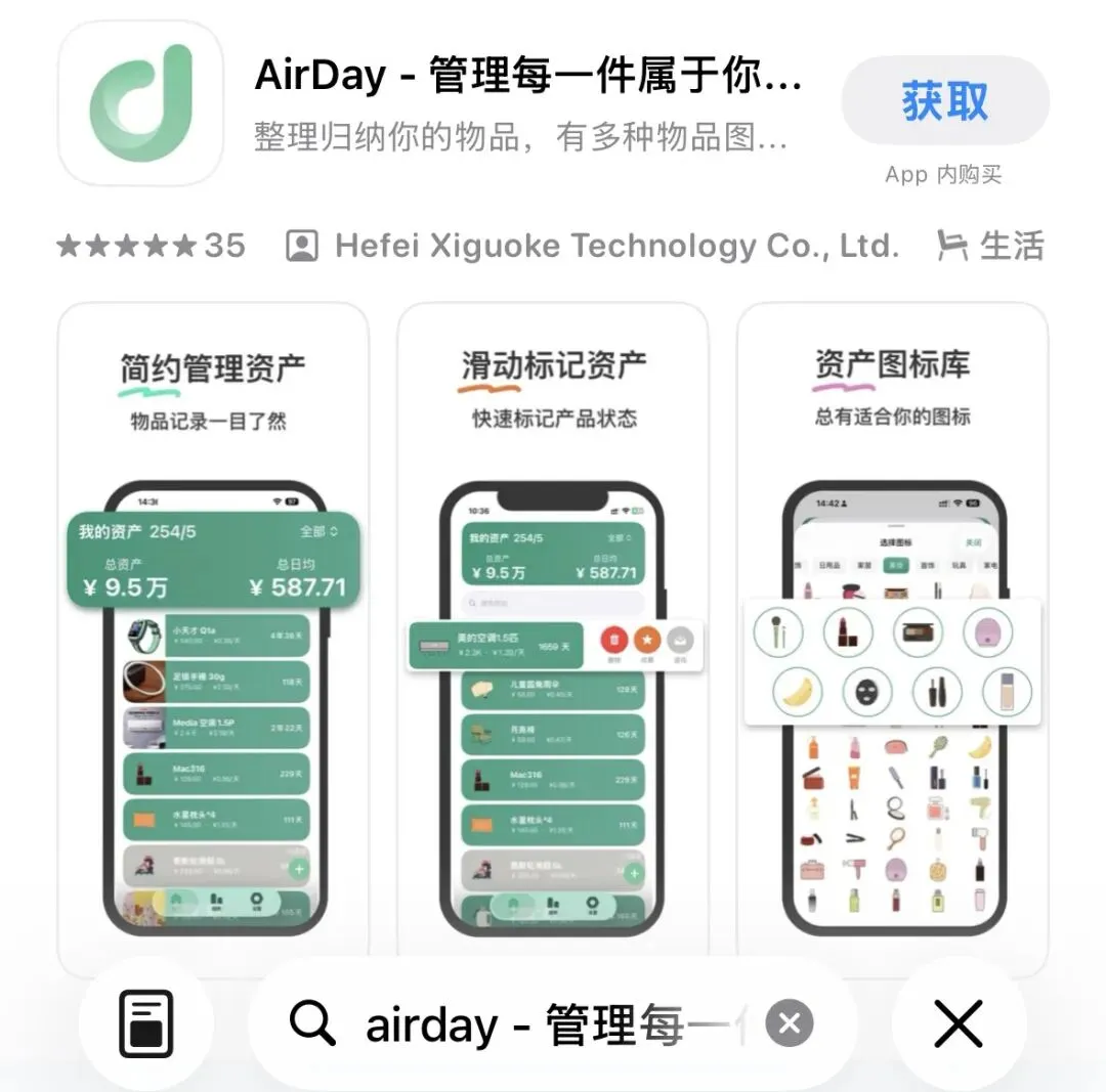 强大APP推荐第234期:一款极简资产管理APP,让日常物品管理不再繁琐约客软件库读完仅需8分钟记得星标公众号长按左侧二维码关注Hi,大家好我是约客。强大APP推荐第234期:一款极简资产管理APP,让日常物品管理不再繁琐。生活中,我们总会积攒各类物品,小到随身配饰,大到家居好物,时间一长,不仅难以理清物品归属,更无法知晓物品的实际使用价值,常常陷入物品杂乱、管理无序的困境。有没有一款工具,能以极简的方式,帮我们清晰掌控每一件私人物品,实现高效有序的资产管理?今天要介绍的这款应用,凭借简洁的操作与实用的功能,成为不少人打理个人物品的首选,接下来就一起深入了解它的核心亮点与真实体验。01专属物品档案,精细化记录资产信息这款APP核心定位是个人物品与资产管理,最基础也最核心的功能,就是为每一件物品建立专属档案。用户可以自由添加物品信息,搭配丰富的图标选择,也能上传物品自定义照片,清晰标注物品名称、购买价格、购买时间、使用场景等关键信息,让每一件物品都有完整的信息留存。无论是日常穿戴、数码产品,还是收藏好物、闲置物品,都能逐一录入,形成专属的个人资产清单,彻底告别物品信息模糊、记忆混乱的问题,轻松实现对个人物品的全方位梳理。02智能价值核算,清晰掌握物品性价比区别于普通的物品清单工具,它具备实用的物品价值核算功能。系统会根据物品的购买价格、使用时长,自动计算出物品日均使用价值,帮助用户直观看到每一件物品的性价比。通过数据化的呈现,用户可以清晰分辨哪些物品是高频使用、物尽其用,哪些物品长期闲置、浪费开支,从而更理性地看待消费与物品使用,培养精简消费、合理购置的习惯,让每一笔支出都更有价值。03便捷操作管理,快速整理物品清单在操作设计上,这款APP主打极简便捷,无需复杂的学习成本。针对清单内的物品,设置了轻量化的滑动操作:右滑即可快速删除无需记录的物品,保持清单简洁;左滑能一键收藏重要物品,或是标记物品为退役状态,区分在用、闲置、废弃等不同状态。这种直观的操作方式,大幅提升了物品管理的效率,无需繁琐点击,就能快速完成物品的归类、整理与筛选,让日常资产管理变得轻松高效。04多元主题切换,打造个性化使用体验为了满足不同用户的审美需求,APP内置多款简约风格主题,用户可以根据自己的喜好随心切换。无论是清新淡雅的色调,还是沉稳简约的版式,都能带来舒适的视觉体验,让原本枯燥的物品管理,变得更具愉悦感。同时,APP整体界面设计简洁干净,无多余繁杂板块,视觉上清爽舒适,长时间使用也不会产生视觉疲劳,兼顾实用性与美观性。05多端数据同步,资产信息随时查看针对用户多设备使用的需求,这款APP支持iCloud数据自动同步功能,在手机、平板等不同设备上登录,都能实时获取最新的物品管理数据,无需手动传输、重复录入。无论何时何地,想要查看、修改资产信息,都能快速操作,避免了数据丢失、不同步的问题,让个人资产管理不受设备限制,真正实现随时随地便捷管理。06现存不足与体验短板尽管这款APP在物品管理上具备诸多优势,但也存在明显的短板。在免费使用模式下,对可添加的物品数量有严格限制,无法满足物品数量较多、需要全面管理资产用户的需求;功能板块相对单一,仅聚焦基础的物品记录与管理,缺少物品折旧提醒、闲置物品处置建议等拓展功能;同时,APP仅支持iOS系统及适配苹果生态设备,安卓用户无法下载使用,受众范围存在局限,整体功能还有较大的优化空间。07答案揭晓和APP下载在个人物品越来越多、资产管理需求日益凸显的当下,这款操作简单、实用性强的工具,精准解决了用户物品杂乱、管理不便的痛点,即便存在一定不足,依旧能满足多数用户的基础资产管理需求。而这款专注于个人物品管理的应用,就是AirDay,它致力于以极简的方式,帮助用户整理归纳资产,掌控每一件属于自己的物品,打造更有序的生活与消费方式。在各大APP应用市场搜索AirDay,点击下载即可。