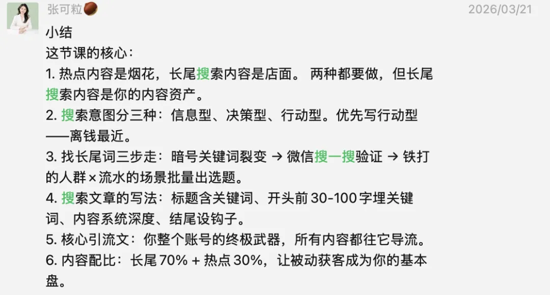 我之前在AI爆款选题课,专门花一节课,写了近上万字的内容讲公众号的搜索算法,然后我学员去实践了,多篇内容都能被搜索到,引流成交了很多精准的客户。