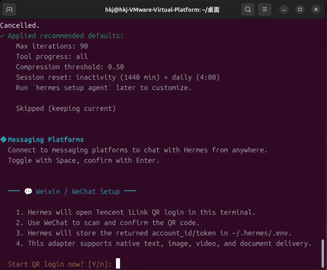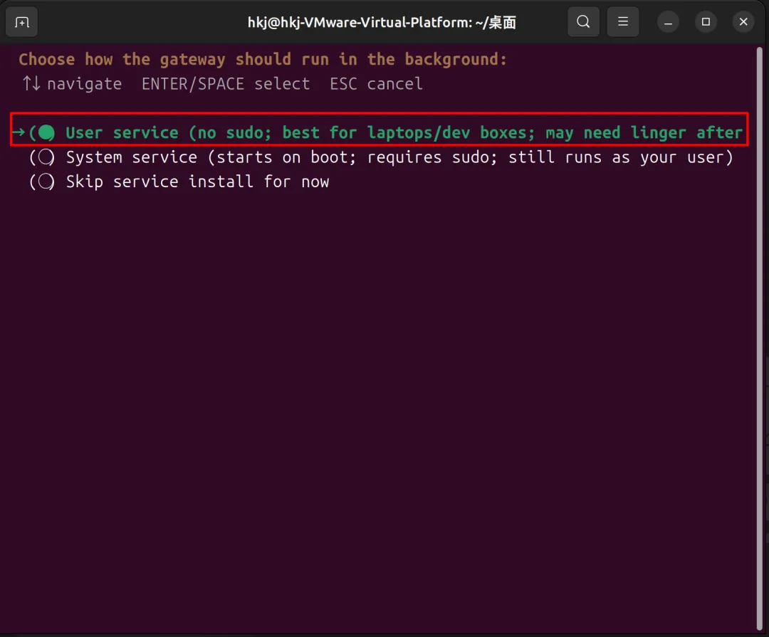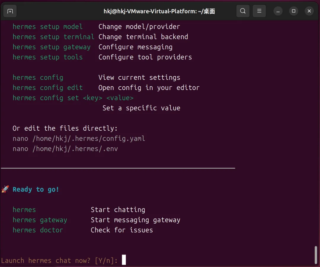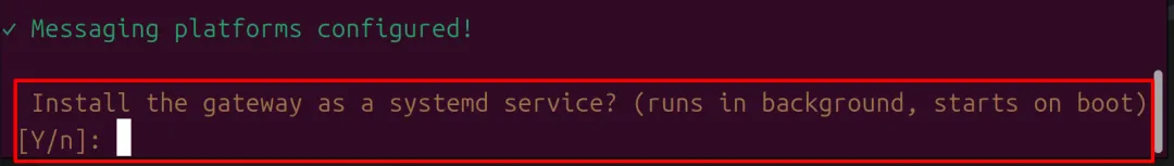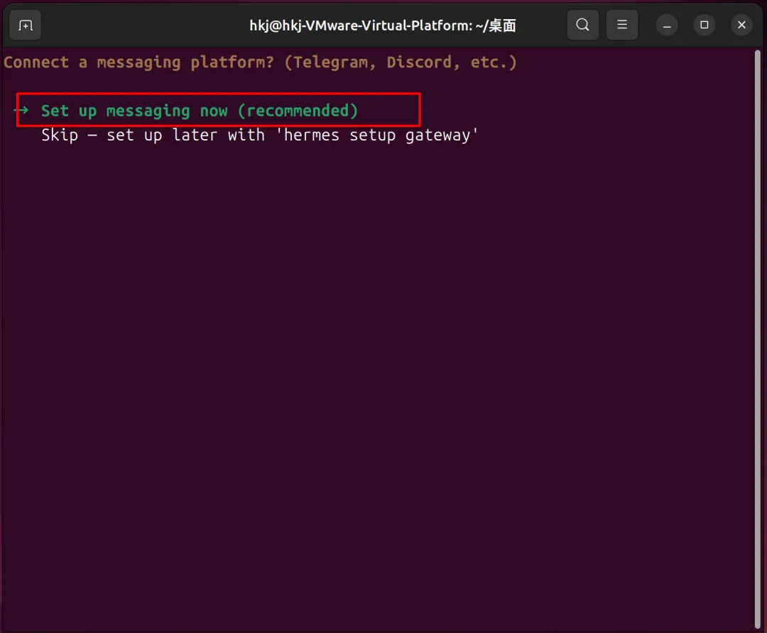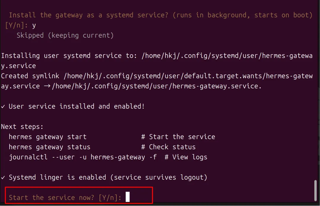 hermes setup如果第一次配置没有出现安装gateway服务的提示,那就从头开始再配置一次,就会有安装gateway服务的提示。