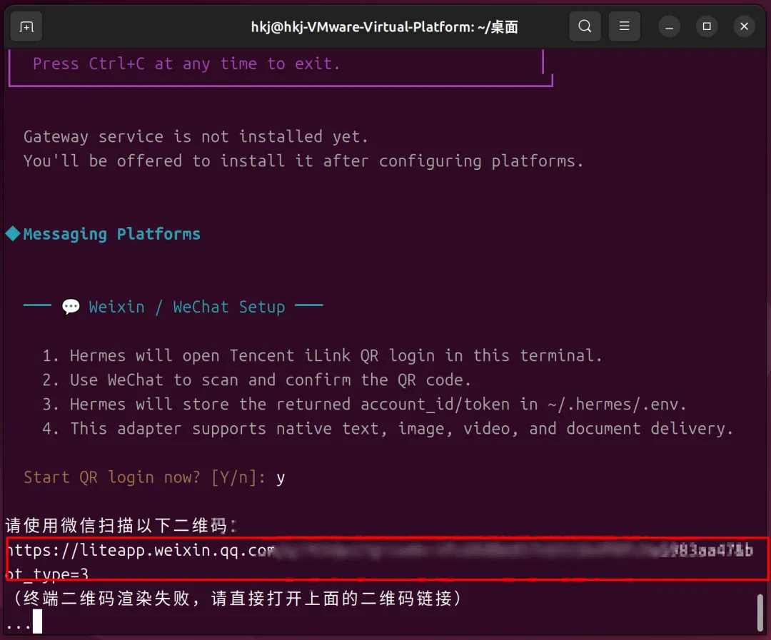 接着就到了这一步,连接微信,这一步不要直接回车,看一下下面说明: