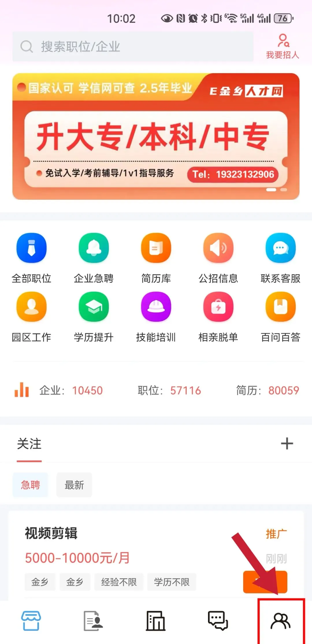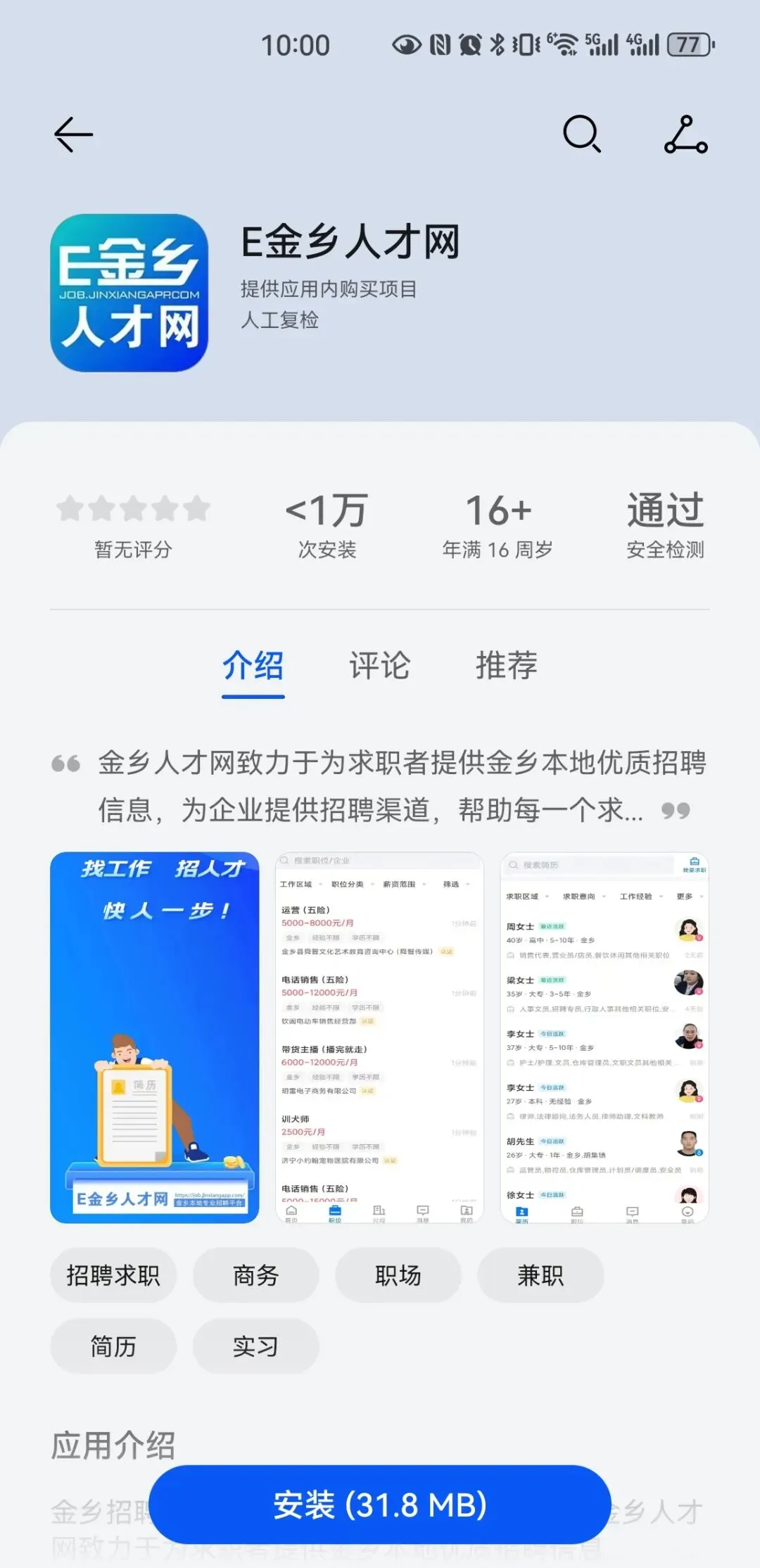 赶紧下载E金乡人才网APP