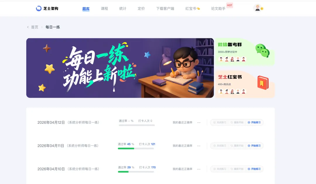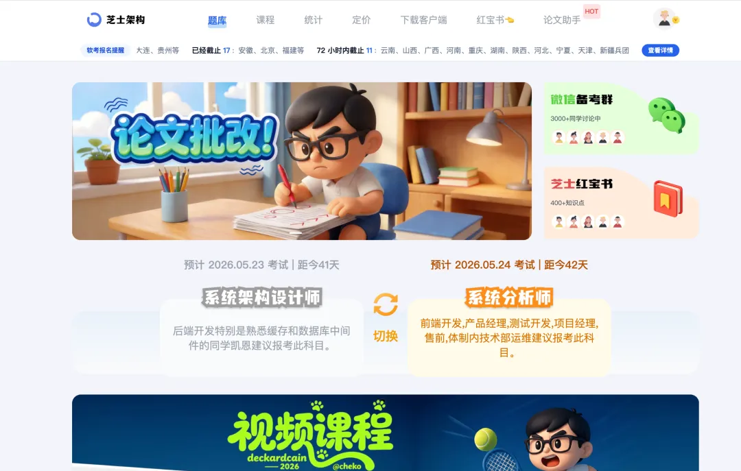 赶紧加凯恩微信进备考群,群里有最新的考试资讯、备考资料、论文押题。下载芝士架构APP,随时随地刷题。
