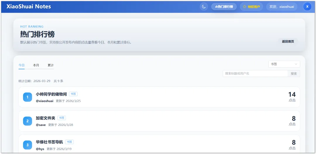 尤其是书签、导航、资源这类内容,热榜入口非常好用。