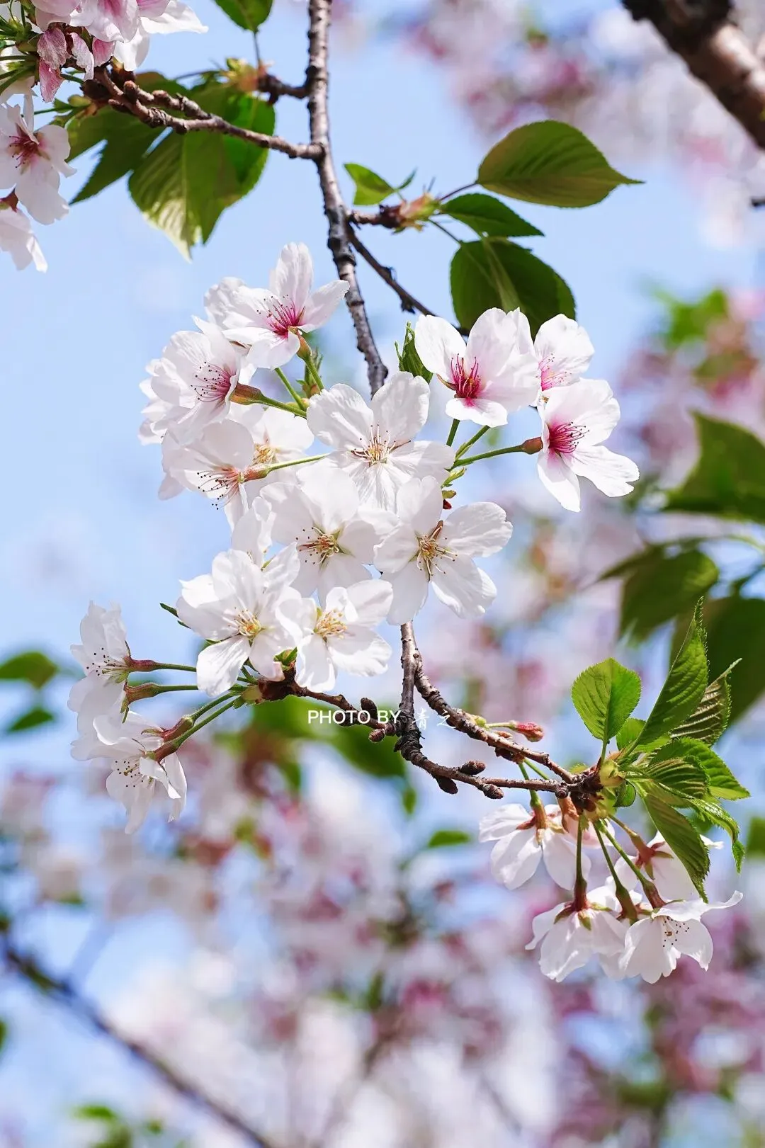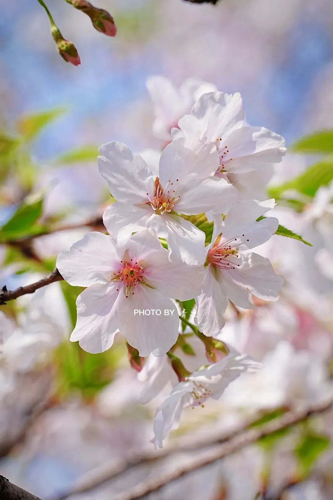 科普一下,染井吉野樱就是那种刚开时带点淡粉、全盛时变成雪白雪白的品种,花期不长,大概就一周到十天的样子,且看且珍惜。