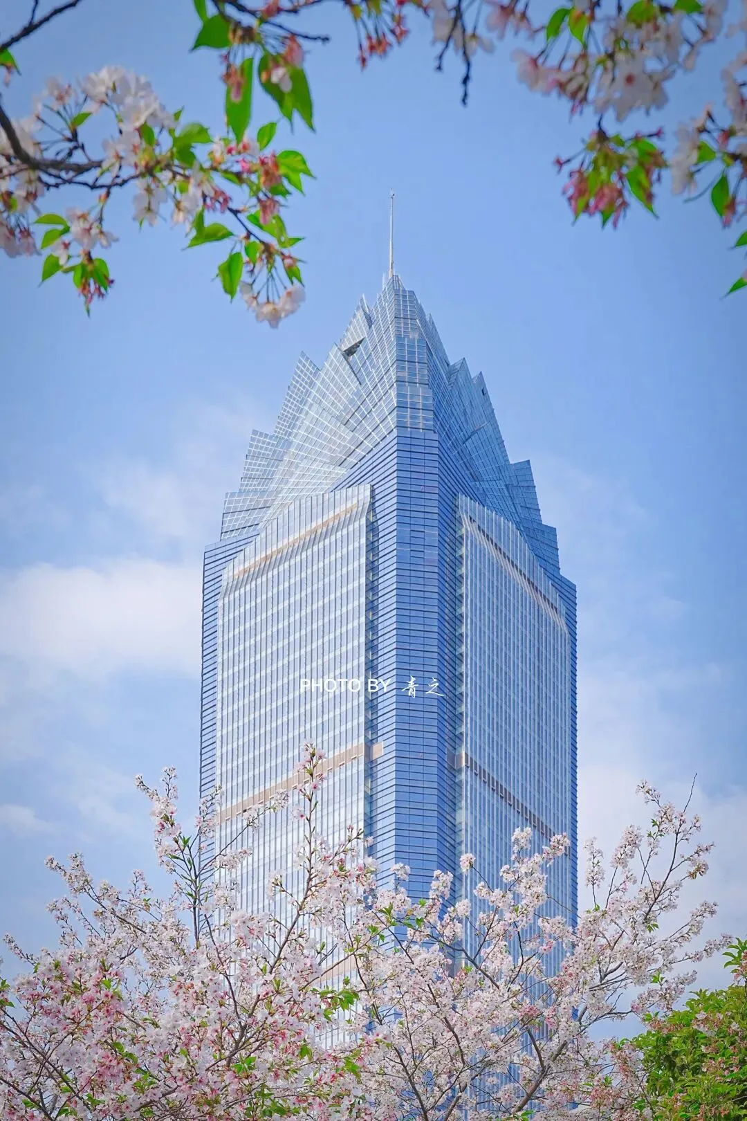 一边是软乎乎的花瓣,一边是冷冰冰的玻璃幕墙反光,这种现代建筑和柔美花海的硬核碰撞,像极了新海诚电影里才有的画面。
