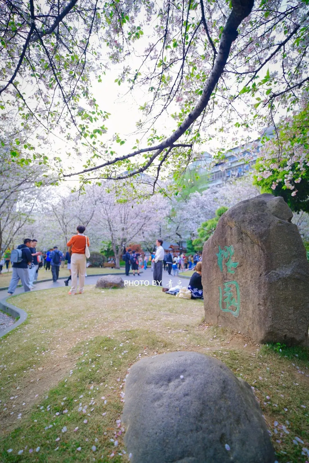 四月的风一吹,温州市中心的马鞍池公园就自动切换到了“樱花季”模式。