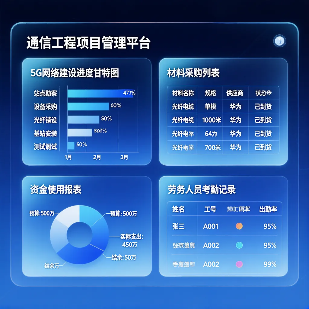 从项目立项、合同管理、材料采购、施工进度、到竣工验收、资金回款——全流程覆盖。