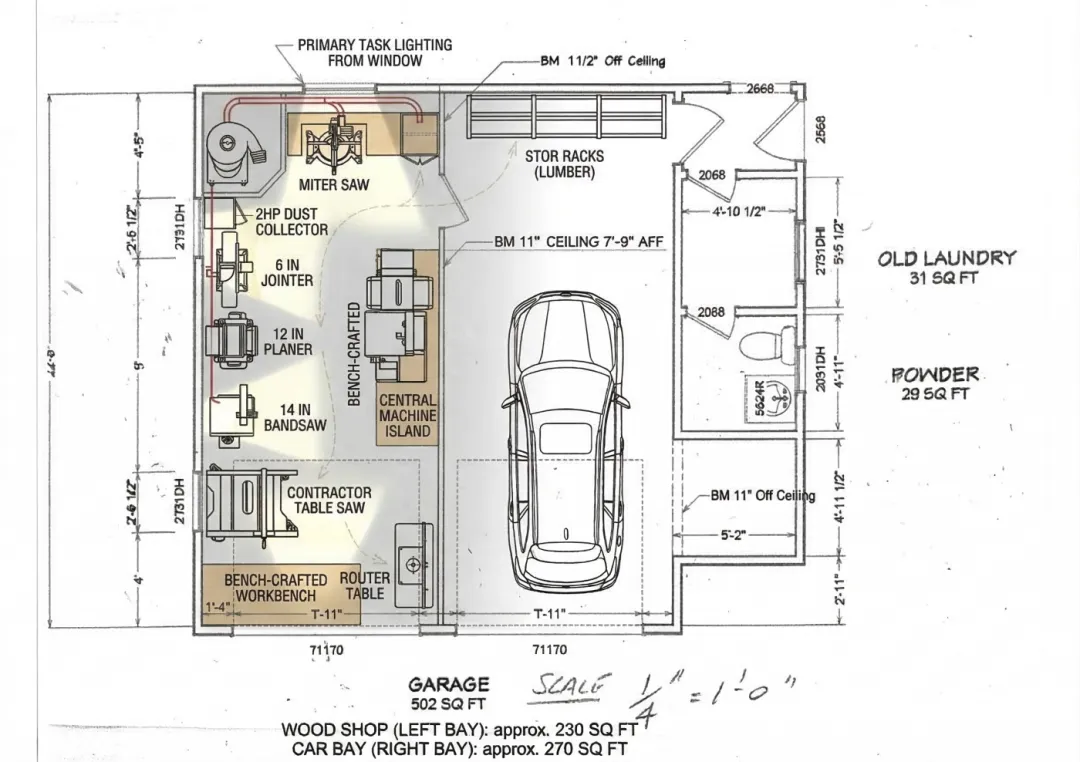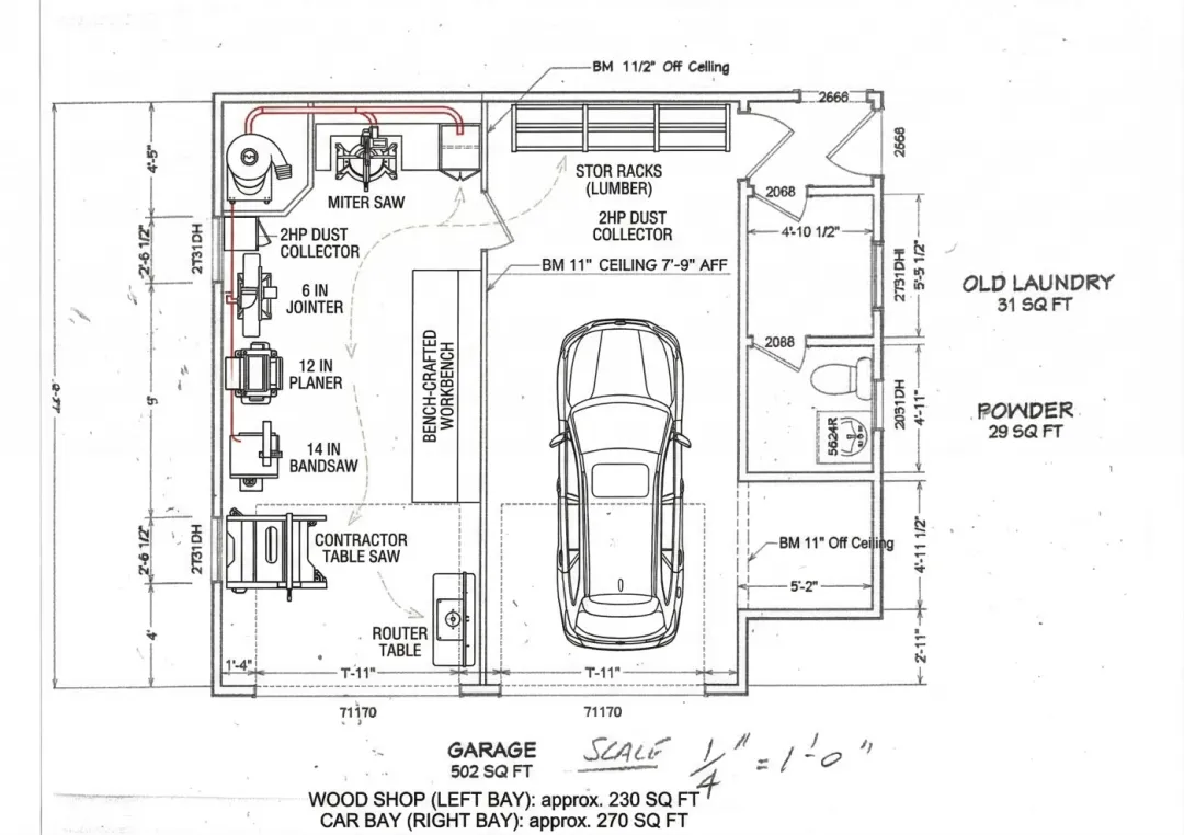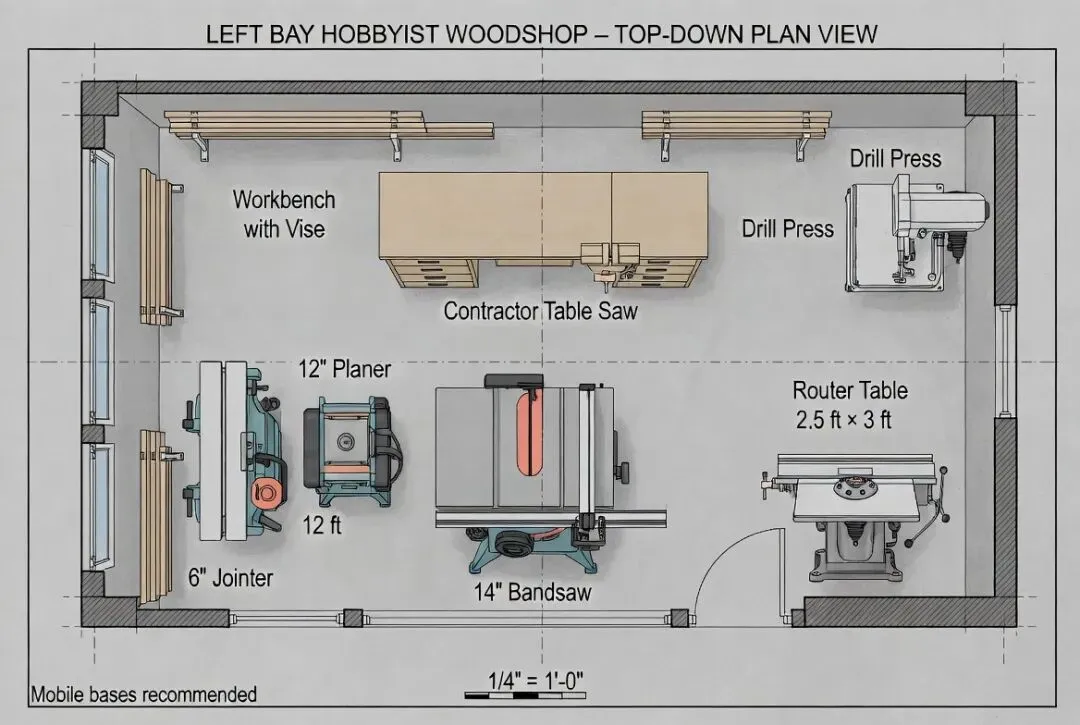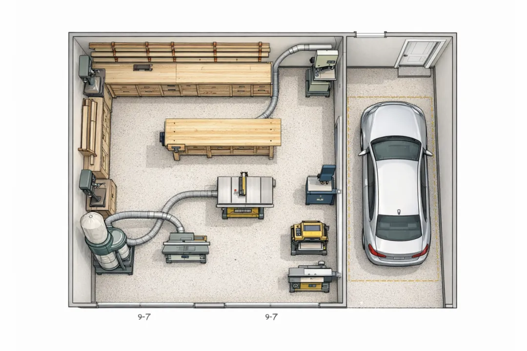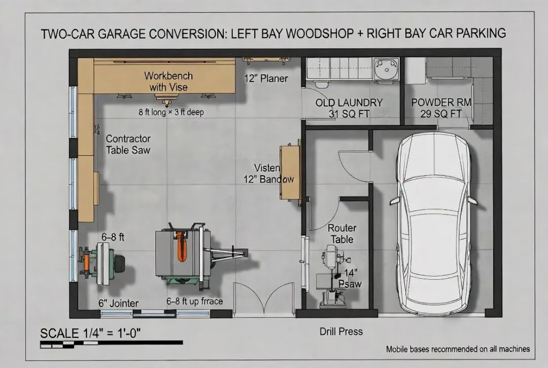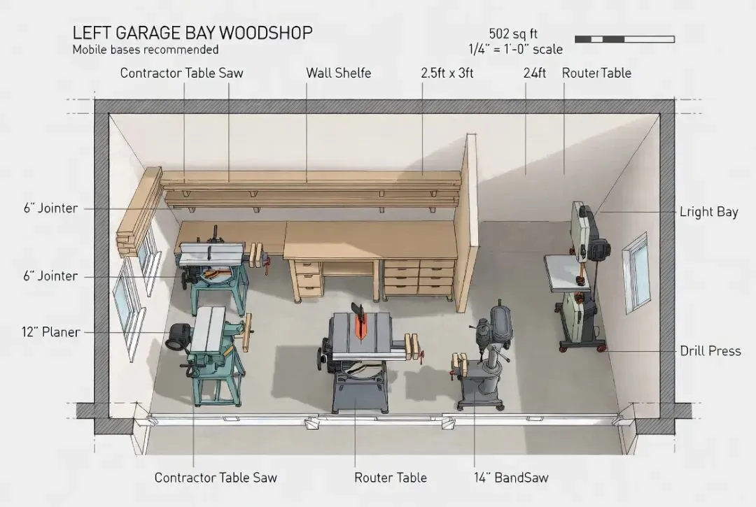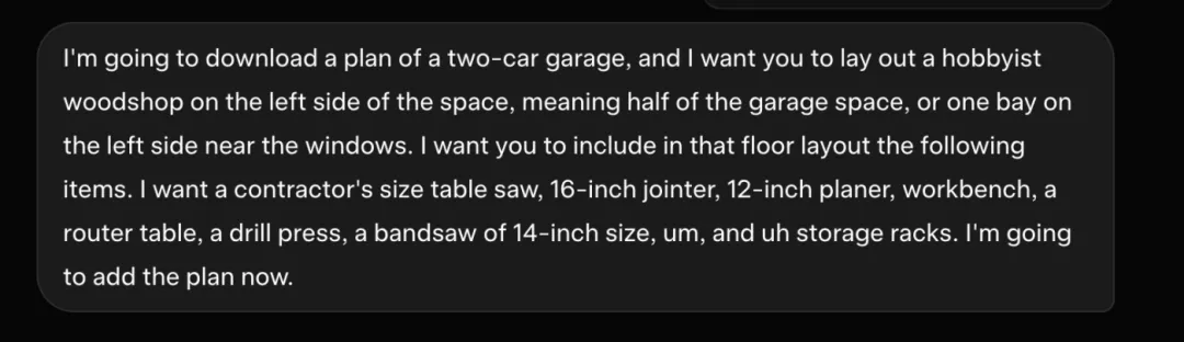 木工房里的AI:数字平面图的翻车现场(二)Grok的“爱丽丝梦游仙境”式方案: 这是一种超现实的三维解读——扭曲的墙体与窗户包裹着面目全非的机械设备,整个空间完全违背了原始平面图的几何逻辑。 请注意它那“极具创意”的工程设计:木工台虎钳被莫名其妙地直接装在了“平压刨”“压刨”“铣台”和“带锯机”上。谁能想到,一台铸铁工具还能顺便充当工作台底座? 这幅画面堪称荒诞,也直观暴露了AI完全缺乏实际工坊操作经验的短板。 在上一篇内容中,我们探讨了人工智能在规划与设计阶段,帮助我们或客户直观呈现家具外观的能力——或者说,它的种种不足。我们发现,尽管这些模型在解读现有图片、调整细节以增加部件或修改尺寸方面表现尚可,但在原创家具设计的细微之处仍力不从心。 在对Grok、Gemini和ChatGPT这三款主流AI模型完成家具设计测试后,我决定给它们安排另一项任务:看看它们能否设计出木工工坊的布局。工坊布局至关重要,尤其是在空间有限的情况下。以我自己为例,我在双车位车库中规划出了单车位大小的工坊区域:先把各类机械设备和配件按比例剪成纸片,在车库平面图上反复摆放,最终为我的工具找到兼顾操作流畅度与实用性的最佳方案。我会在后续文章中详细聊聊我这套车库设计,但我很好奇:拥有强大计算能力的AI,能否给出更优的布局方案? 对照组。上图:提供给AI的空白尺寸平面图 下图:我自己的“传统”方案——通过移动机械设备纸片在图纸上反复试错,得出最优操作动线。这种手动规划能综合考量进料/出料路径与空间限制,是算法目前无法企及的。 测试过程 我为每款AI提供了带尺寸的空白场地平面图,标注了窗户和两扇车库门的位置,并要求仅在左侧区域设计工坊。所需设备包括:商用台锯、带锯、6英寸平压刨、12英寸压刨、铣台、集尘器、台面式斜切锯、工作台以及部分储物空间。 语音输入的坑。这张截图是我最初的指令。可以留意其中的细节——这也是AI遇到的第一个“数字障碍”。我口述的是6英寸平压刨,AI却“听”成了16英寸。尽管这些模型擅长解析语音指令,但这个微小失误足以说明:还没摆放第一件设备,整个布局就可能彻底跑偏。 令人哭笑不得的结果 毫不夸张地说,结果非常令人失望。尽管所有AI都具备出色的绘图与视觉表现能力,但它们完全不懂一个真实的木工工坊该如何运转。 坦白说,部分输出结果甚至可以用荒唐、滑稽来形容。从下面的案例中你能看到,有些设计把车库墙体扭曲变形,设备摆放杂乱无章;有些设计了怪异的集尘系统,软管直接连在工作台上,或是从其他设备顶端横穿而过。更有甚者,部分模型完全无视我“仅使用左侧区域”的要求,占用了整个车库空间,相当于直接把车“赶”了出去。 可以看到AI彻底修改了车库平面图,直接把车辆封闭了起来。模型完全无法理解“仅在左侧建工坊”的基本要求,还拆毁了原有浴室的墙体,做出了诡异的布局,甚至把集尘软管直接连在了工作台上。 三款模型中,Gemini 表现最好。它精准还原了平面图线条,包括墙体与窗户的正确厚度。第一次尝试就给出了还算合理的工坊布局,尽管部分设备被挤在角落——对铣台这类工具来说,这绝非理想位置。 但 Gemini 也做了个“聪明”的举动:它把部分工坊组件放在了非规划区的车辆前方。这一点很有意思,因为我在自己的手动设计中,也利用了第二个车位的闲置空间做了延伸布局。 在首次成功生成可用方案后,我让它再提供一套备选布局,看看它能否在同一空间内设计出不同但依旧实用的排布。遗憾的是,第二次效果远不如第一次,完全丢失了初稿的建筑逻辑。这也证明,在AI的世界里,“更多”并不代表“更好”。 最后我尝试引导它做出更贴合实际的布局,要求把工作台靠窗摆放以利用自然光。AI确实“画出”了照进空间的光线,却彻底重构了车库结构,逻辑完全不通。为了满足采光的视觉效果,它直接抛弃了平面图的建筑现实——典型的形式大于功能。 人类的王牌 归根结底,人类的大脑——凭借经验、动手试错的能力,以及在平面图上移动纸片预判最优方案的思维——依然胜过AI。至少在目前,AI还不具备这种综合考量需求、使用方式与空间关系的深层分析能力。 我相信随着时间推移,这些模型会不断学习进步。但就现阶段而言,木工从业者最好还是依靠经典的工坊规划书籍或专业文章来布局空间。目前来看,亲自动手规划,仍是打造实用工作空间的最佳方式。 下期我将继续探讨AI对木工是否实用,以及它究竟在哪些具体领域能真正发挥优势。