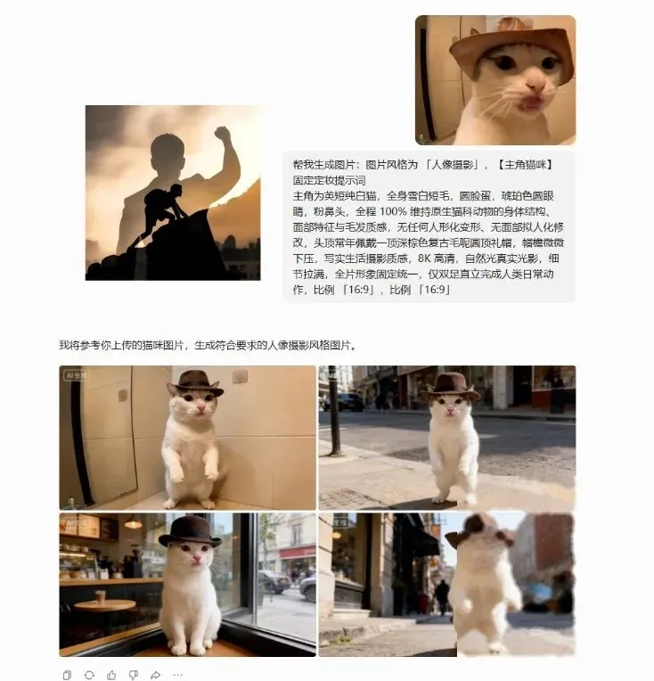 把上一步生成的猫咪文生图提示词,直接丢给豆包或即梦,生成角色形象。