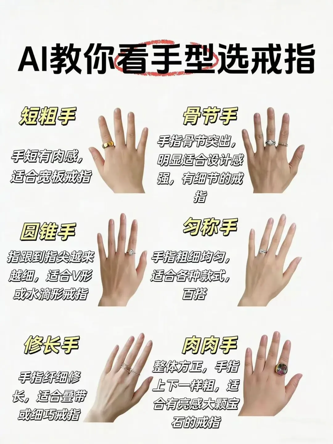 AI看手型选戒指,5张图讲明白,选对戒指更精致,日常佩戴更显手美