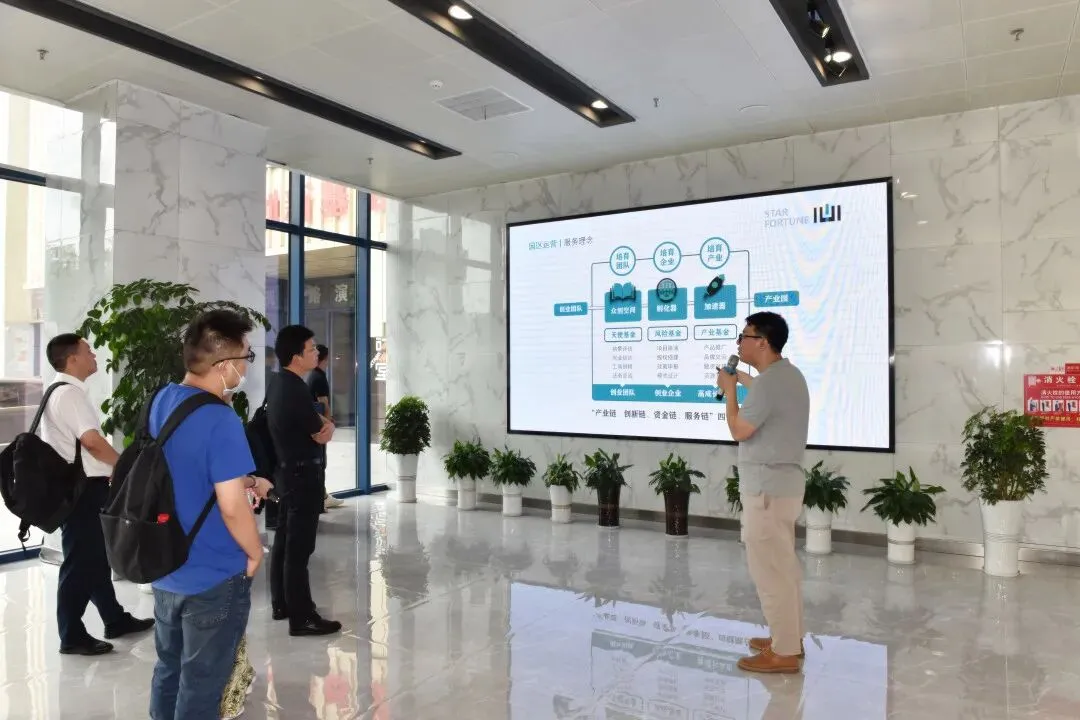 洽谈之前,星中国际青创园总经理助理杨军向客人们简要介绍了星中集团近年来的发展情况。