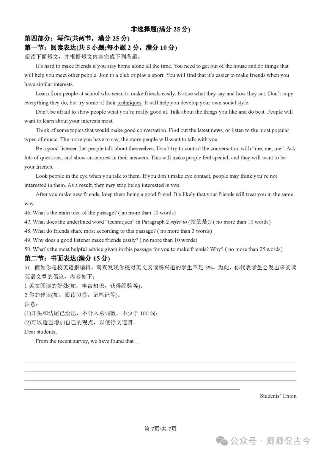 【可下载】天津市河西区2024-2025学年高一下学期4月期中考试英语试题(附解析)点击上方“蓝字”免费关注!本套试卷+答案解析下载入口关注“卿卿侃古今”公众号在聊天对话框内发送关键词0510相关链接:2007-2025年天津市高考英语真题汇总(持续更新中~)2011-2023年天津高考英语听力真题在线测试【考前热身】天津高考英语听力真题【高考英语听力在线测试】高考听力机考模拟试题大全(持续更新中)【可下载】2025-2026年高中英语试题汇总(附解析)【持续更新中】【汇总】高中英语月考和期中期末试题(持续更新中~)【题库】高一英语试题汇编(持续更新中~)【题库】高二英语试题汇编(持续更新中~)【题库】高三英语试题汇编(持续更新中~)【可下载】高三英语上学期期末试题16套(附解析)【可下载】高二英语上学期期末试题10套(附解析)【可下载】高一英语上学期期末试题汇9套(附解析)【可下载】2025-2026学年度高一高二高三开学考试模拟试卷(天津专用)(附解析)新外研版高中英语高清电子课本、课文原文和译文、单元同步复习资料和试题【持续更新中】【目录1】高中英语阅读理解限时训练大全(持续更新中~)【目录2】高中英语完形填空限时训练大全(持续更新中~)【目录3】高中英语书面表达大全(持续更新中~)【目录4】高中英语听力训练大全(持续更新中~)【目录5】高中英语单选题大全(持续更新中~)【目录6】高中英语语法题大全(持续更新中~)【目录7】高中英语阅读表达题大全(持续更新中~)【目录8】科普知识汇总【目录9】中高考学法知识汇总【目录10】高考英语真题+名校模拟真题+月考和期中期末试题(持续更新中~)【目录11】暑期高考英语备考资料大全持续更新中~【汇总】中高考志愿填报资料大全【汇总】高中英语月考和期中期末试题(持续更新中~)【汇总】2025届高三英语一模试题(附解析)【汇总】2024届高三英语一模二模三模试题(附解析)【汇总】2024届高考英语押题卷(附解析)【汇总】2025届高三英语周考综合练(附解析)【题库】高三英语限时训练(持续更新中~)【模拟】2025届高三英语听力机考模拟试题在线测试【高考词汇】(新)外研版高中英语全七册词汇表(附音频)【中考词汇】初中英语外研版必备单词表(完整版),可打印 建议收藏保存点击阅读原文查更多