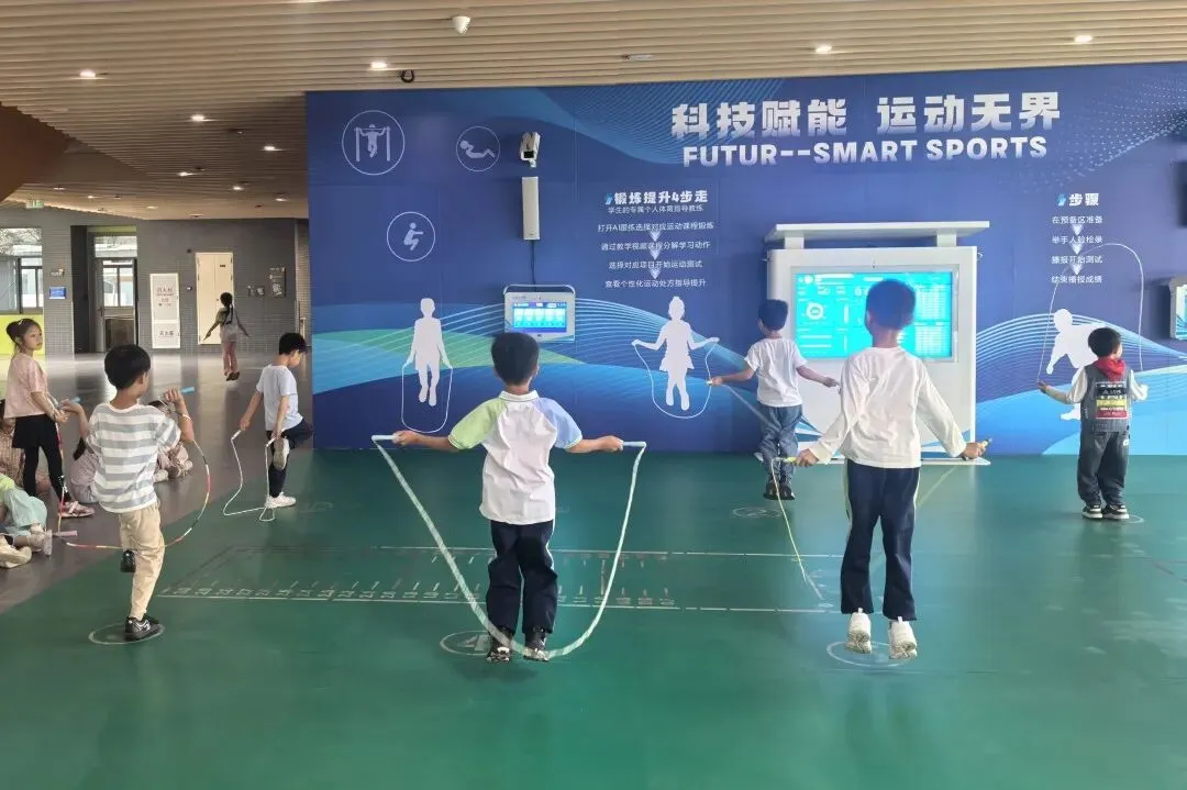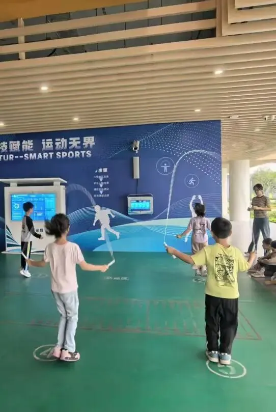 走进第一关“小马初试”的赛场,最引人注目的莫过于AI智能体育测试一体机。这片设在架空层的AI体育区域,平日里就是孩子们喜爱的“打卡地”,今天更成了他们一展身手的舞台。孩子们站上测量垫,握紧跳绳,随着一声哨响,屏幕上的数字快速攀升。这台智能机器不仅记录着当下的成绩,更悄悄保存着每一次练习的痕迹——从最初跳不到几十个,到如今轻松破百,每一份进步都被清晰看见。从精准计数到实时反馈,科技不仅提升了比赛效率,更让体育评价更加科学、公正,也让孩子们的努力有了温暖的见证。