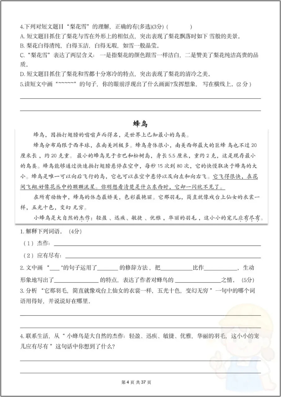 共37页,电子版可下载打印,每天练1篇,孩子照着套,阅读题再也不丢分,期中期末轻松提分~如果觉得合适,请支持正版!