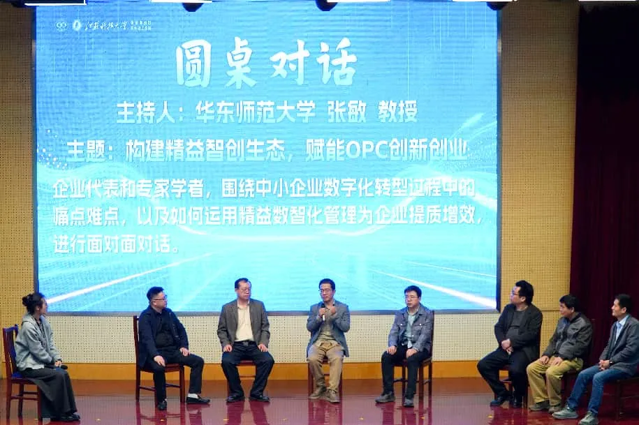 大会交流分享环节,来自南京捌零零、北京玻色量子、钉钉等9家行业知名企业代表分享了在AI研发和应用实践中的创新路径与落地成果,与会企业代表和专家学者聚焦“构建精益智创生态 赋能OPC创新创业”主题,围绕中小企业数字化转型过程中的痛点难点,以及如何运用精益数智化管理为企业提质增效,进行面对面对话。
