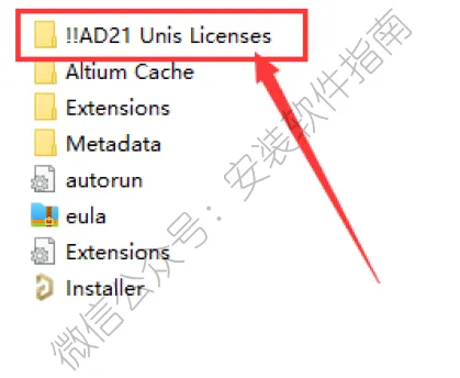 13、返回解压出来的安装包,选择并打开【!!AD21 Unis licenses】文件夹