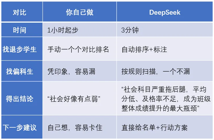 3分钟让DeepSeek告诉你:谁退步了、哪科最弱、该找谁谈话