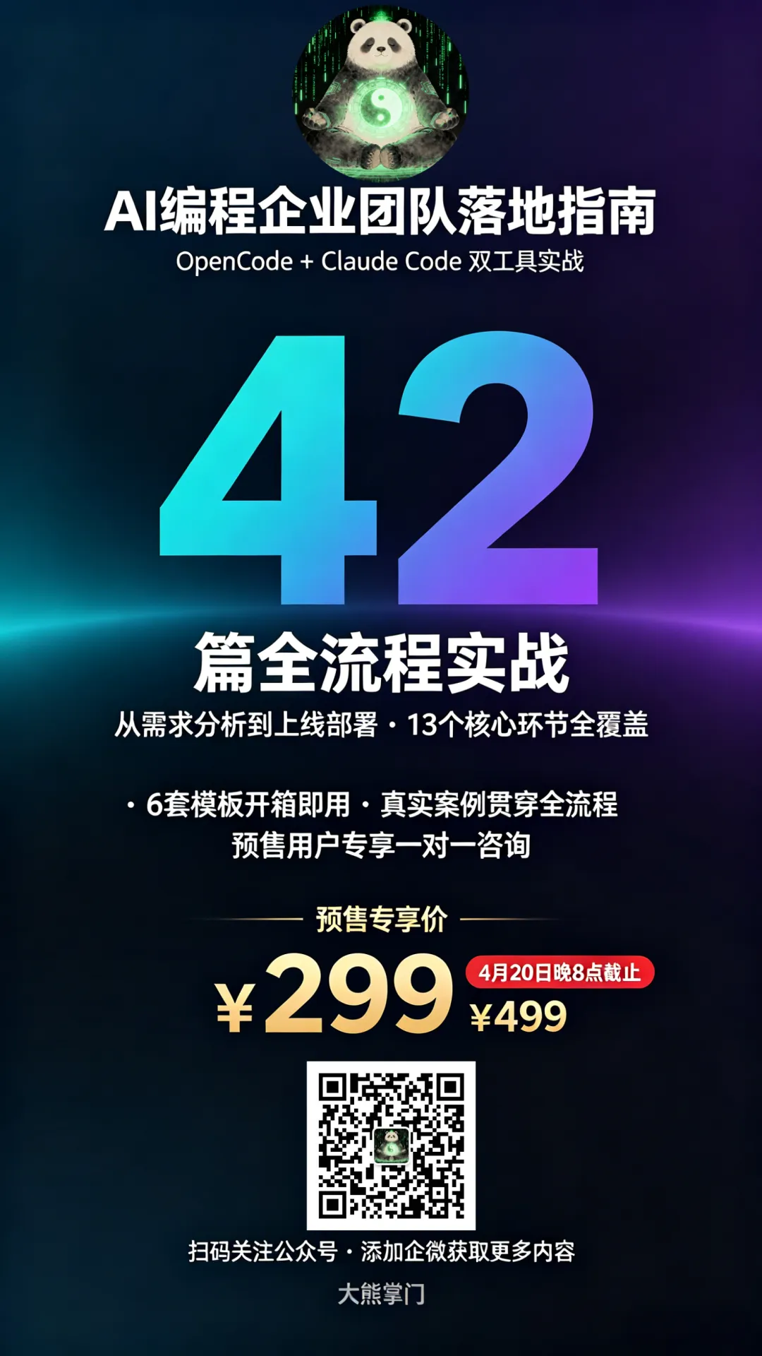 进阶版将从认知进入实操:手把手完成 OpenCode 的安装配置、AGENTS.md 编写、自定义 Agent 搭建,以及 Claude Code 的 CLAUDE.md 和 Hooks 配置,用真实项目走完双工具协作的全流程。