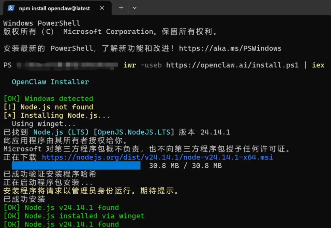 iwr -useb https://openclaw.ai/install.ps1 | iex