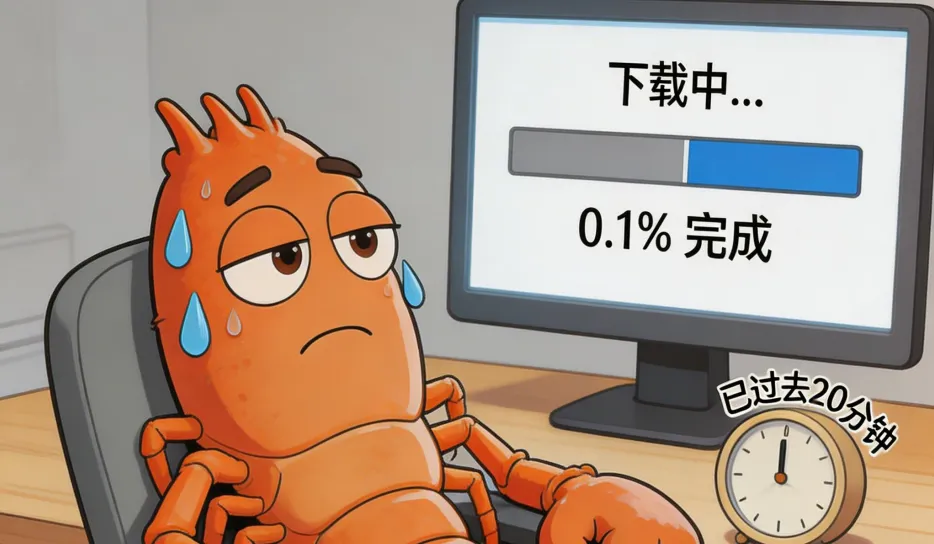 download-lib.js: downloading from GitHub CDN...整整二十分钟,进度条纹丝不动。我查了下原因:OpenClaw有一些原生依赖,需要从GitHub CDN下载。而GitHub CDN在国内,你懂的。
