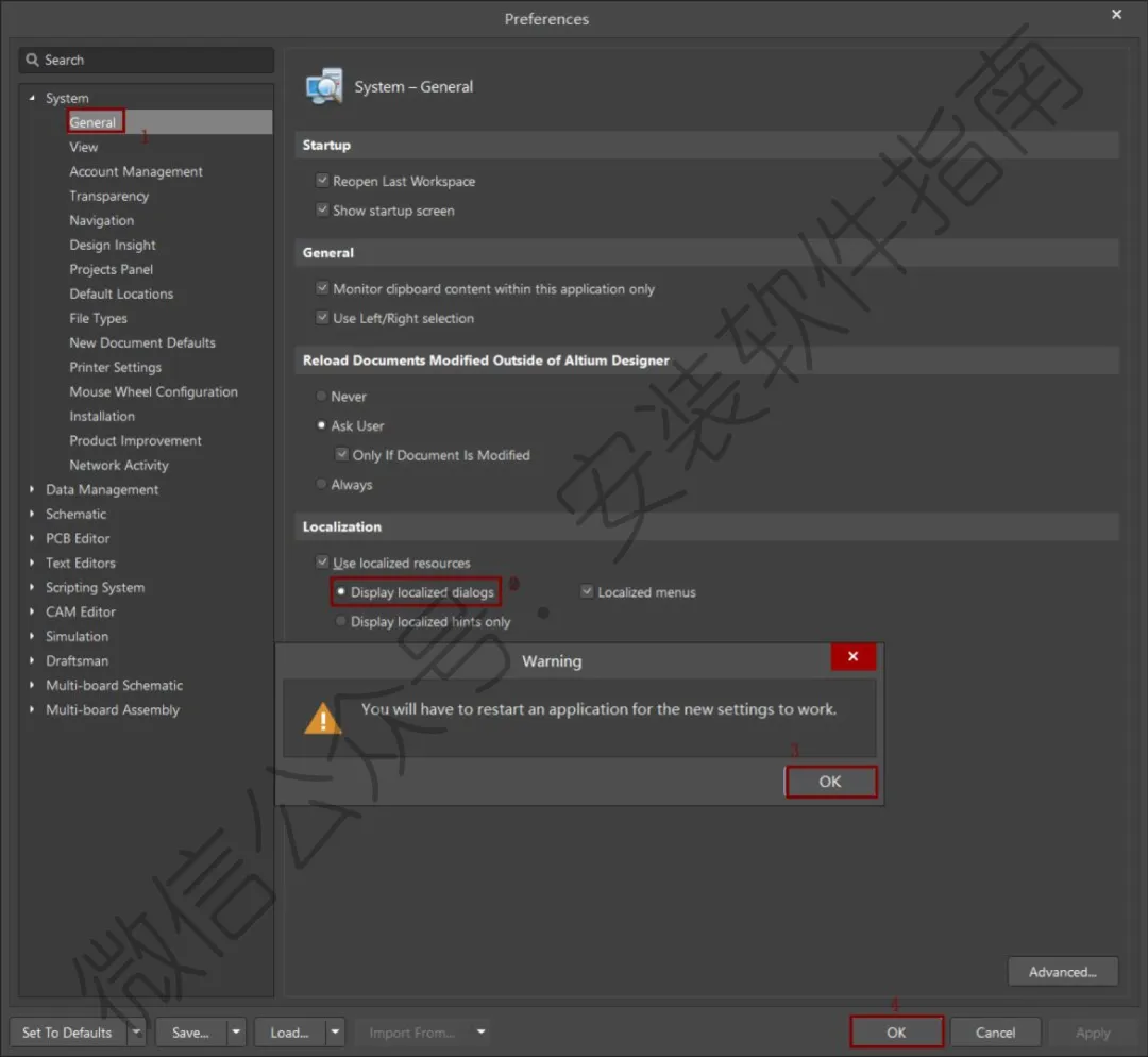 19、 勾选"Use localized resources",点击OK,再点击“OK”,重启软件。