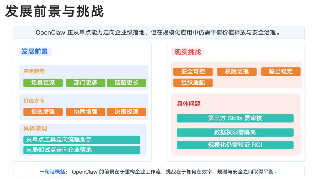 OpenClaw的前景在于重构企业工作流,挑战在于如何在效率、规则与安全之间取得平衡。