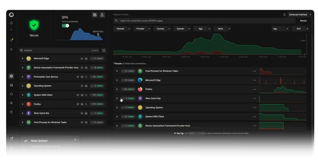 之前我用 Windows 自带的防火墙管应用联网,那玩意儿的体验就是:你以为你在管它,其实它在管你。想屏蔽某个软件偷偷往外发数据,得先打开控制面板,找到高级防火墙设置,新建出站规则,选程序,找路径,下一步下一步下一步,配完了还不知道有没有生效,因为根本没有任何地方告诉你这个程序现在到底在干什么。后来装了个第三方防火墙,弹窗多到我想砸电脑,每隔五分钟就问我"是否允许 xxx 访问网络",我说允许,它下次还问,我说拒绝,软件直接崩了,完全不知道它在保护我还是在折磨我。Portmaster 是我后来找到的,开源免费,奥地利团队做的,Windows 和 Linux 都支持。最让我觉得真香的地方是:按应用单独设规则,而且是真的细到每一个 app。