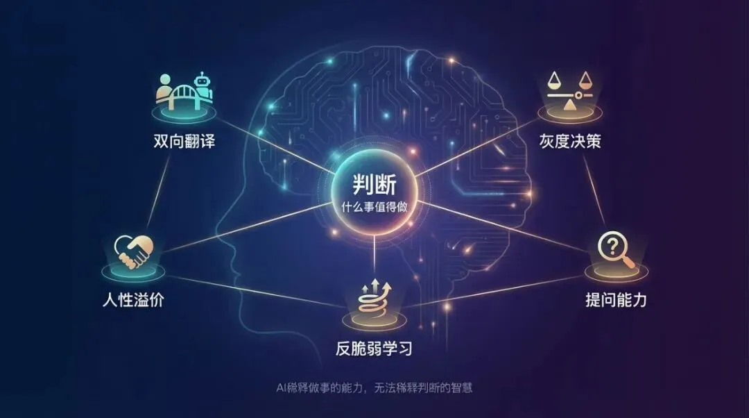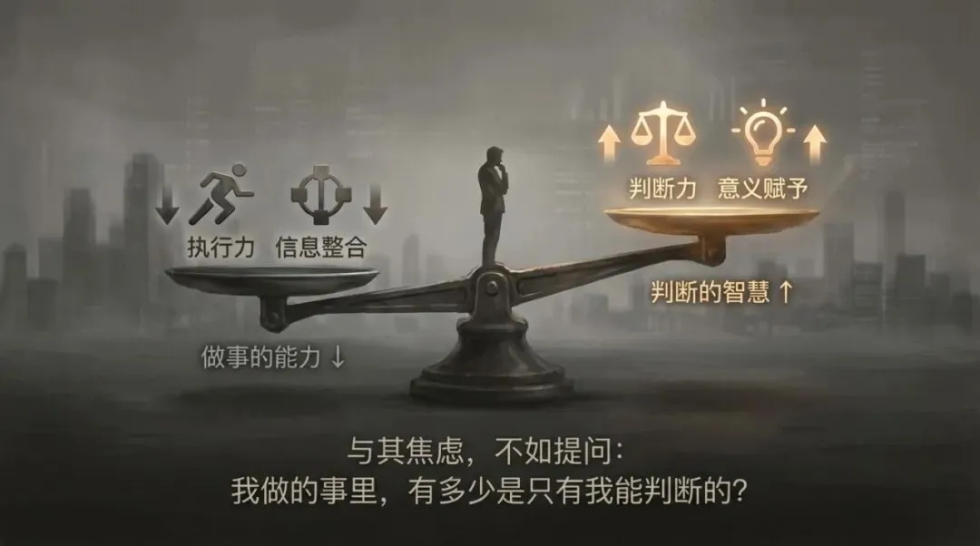 AI稀释的,是「把已知的事做好」的能力;AI无法稀释的,是「判断什么事值得做」的智慧。