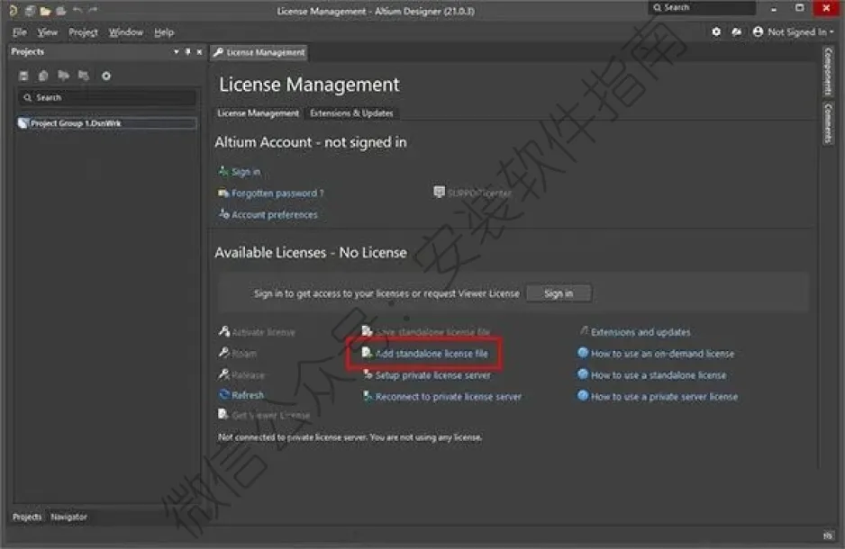 8、因为没有在创建桌面快捷方式,所以在电脑左下角搜索并打开软件,点击【Add standalone license file】;