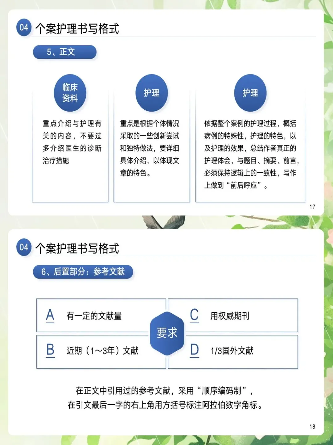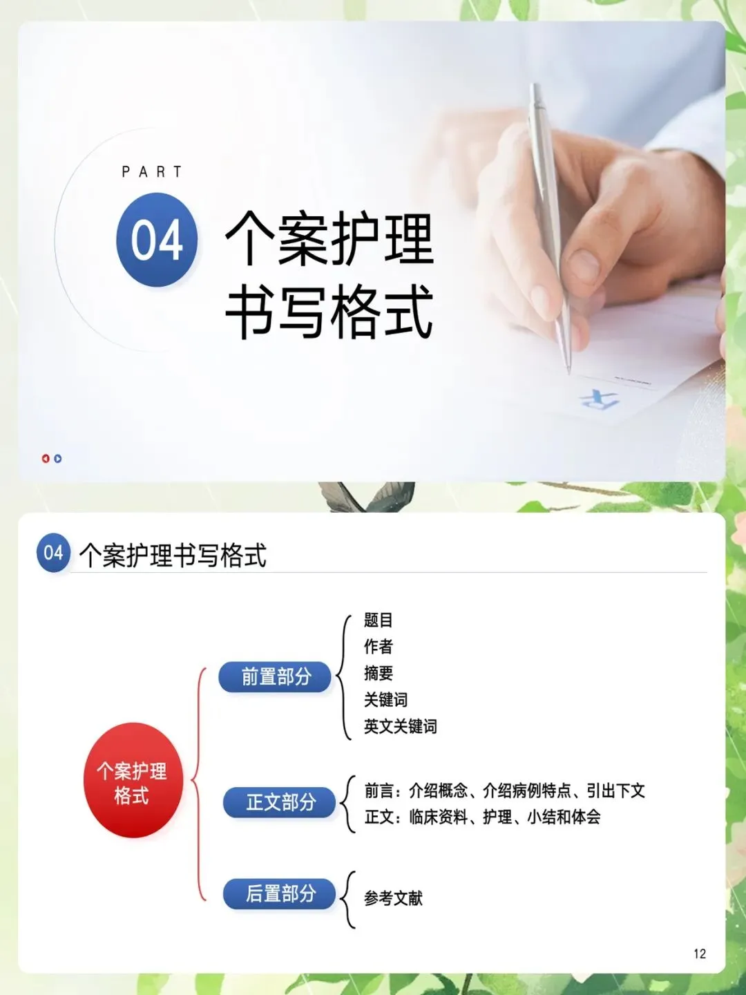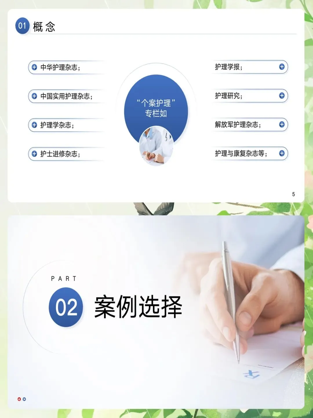 今天一起学习《个案护理的书写》。个案护理是护理科研论文中常见的一种文体,它以临床中某一个或几个特殊、典型的成功病例为素材,具有很强的实践指导意义。